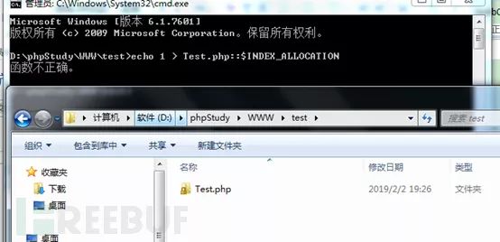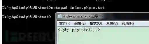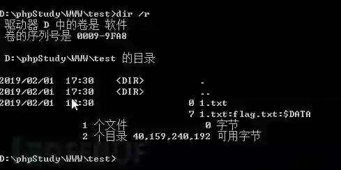 | 上传的文件名 | 服务器表面现象 | 生成的文件内容 || --- | --- | --- || Test.php:a.jpg | 生成Test.php | 空 || Test.php::$DATA | 生成test.php | <?phpphpinfo();?> || Test.php::$INDEX_ALLOCATION | 生成test.php文件夹 | \ || Test.php::$DATA\0.jpg | 生成0.jpg | <?phpphpinfo();?> |