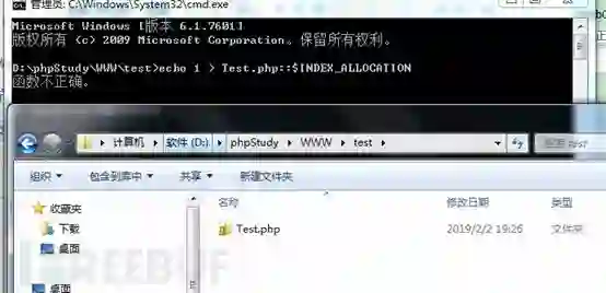 可以注意到上传文件名为Test.php::$INDEX_ALLOCATION时会生成对应的文件夹,利用此种特性也可以用于突破UDF提权时遇到无法创建文件夹的问题。