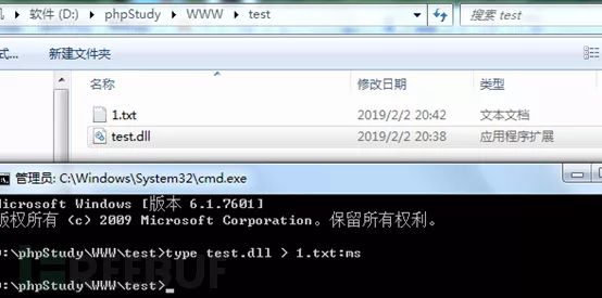 这一块主要是用于Bypass上传黑名单验证,因为在我们上传数据流文件时,形如test.php::$DATA、test.php:a.txt这样的后缀,windows系统必定需要创建一个对应的宿主文件test.php,同时假设我们需要上传的文件内容为: