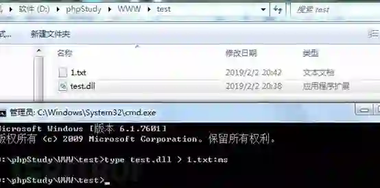 type test.dll > 1.txt:ms