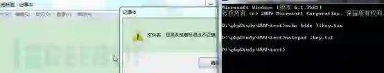 文件内容可以使用命令notepad 1.txt:flag.txt 进行查看和编辑 查看到文件名: