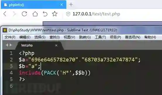 然后参考:https://blog.csdn.net/nzjdsds/article/details/81260524的方法,Hex之后通过利用PHP 可变变量进行二次转换,696e6465782e7068703a732e747874为index.php:s.txt的hex编码,最终test.php中内容如下: