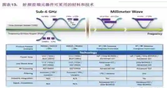 进入5G时代,Sub-6GHz和毫米波阶段各射频元器件的材料和技术可能会有所变化。SOI有可能成为重要技术,具有制作多种元器件的潜力,同时后续有利于集成。