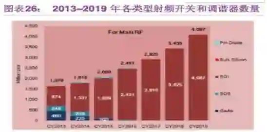 目前射频开关、天线调谐器主要采用RF-SOI技术。滤波器、双工主要是SAW/BAW。