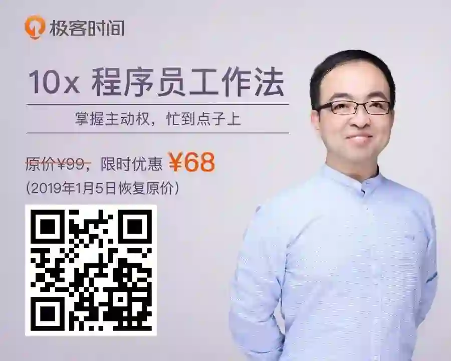 作为程序员,该如何高效工作,掌握主动权,忙到点子上?《10x程序员工作法》专栏里,资深架构师郑晔带你真正掌握高效工作法则。现在订阅,更有以下福利: