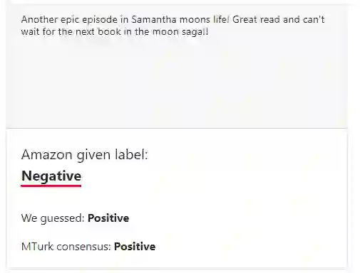 第二种是被标错的文本情感倾向,如亚马逊的商品评价本来是消极的,但被标成积极的。