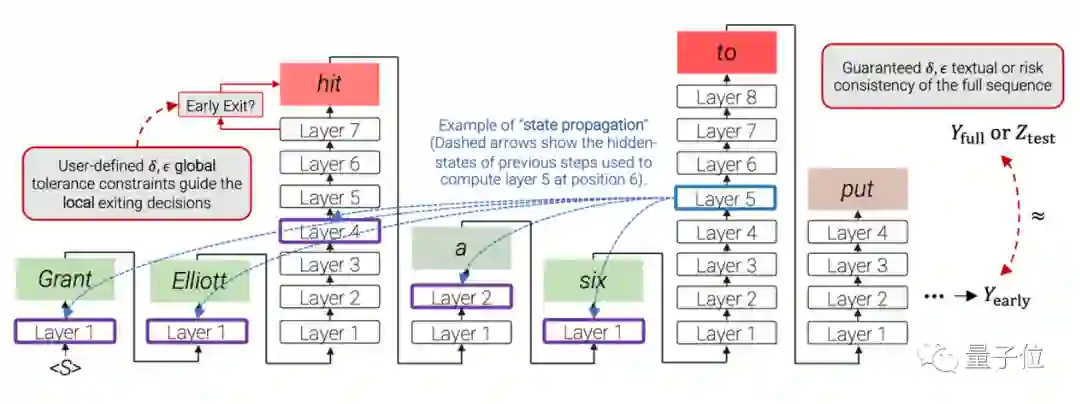 这一模型基于Transformer架构,为了加速它的计算,研究人员提出了一个名叫“提前退出”(early exiting)的方法,让模型根据不同的输入,动态决定要用多少层网络来计算。