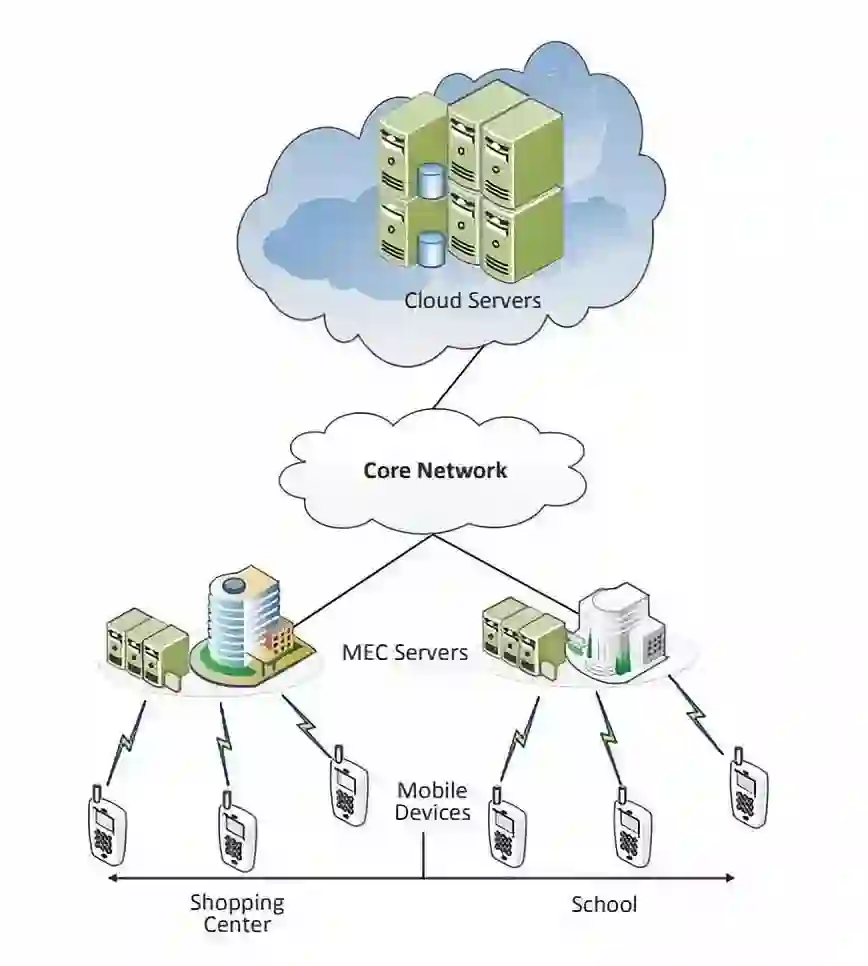 移动边缘计算通过接入无线通信网络为传统核心网络带来了计算和存储的能力。在这个新的架构中,传统的基站不仅可以进行流量控制,还可以将资源较少的边缘服务器/云部署到邻近的移动用户上以提供上下文感知服务。移动边缘计算的主要目标是提供更少延迟和最小带宽的应用程序和服务。