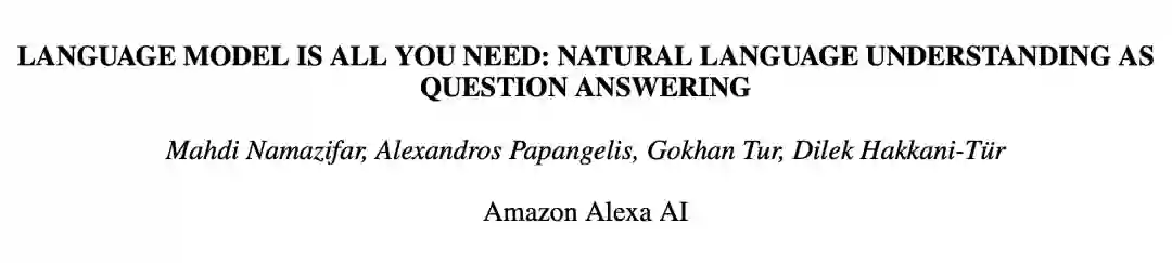 本文来自亚马逊 AI,题目起的跟 attention is all you need 类似,很吸引人。具体而言,本文研究的是 transfer learning,提出了自然语言理解的很多任务都可以使用问答模型进行解决。