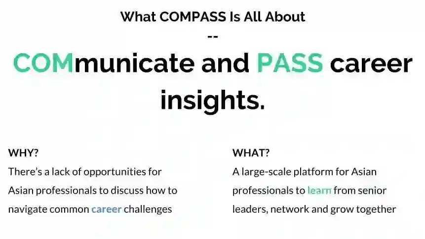 我们相信“传帮带”的魔力,希望通过举办更多的高水平的职场发展主题的活动让大家从过来人的经验中更有效地学习,这推动了我们举办 COMPASS Career Conference —— 一个面向1500人,特邀40多位重量级嘉宾,为期1天,时长9小时的干货分享,让大家从嘉宾们的分享中学习进步。