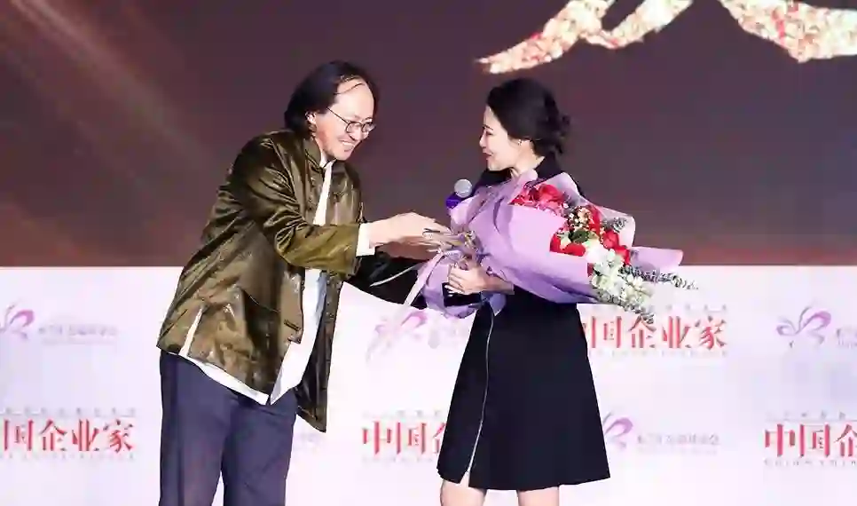 《中国企业家》杂志社社长何振红为钻石木兰获得者韩小红颁奖。