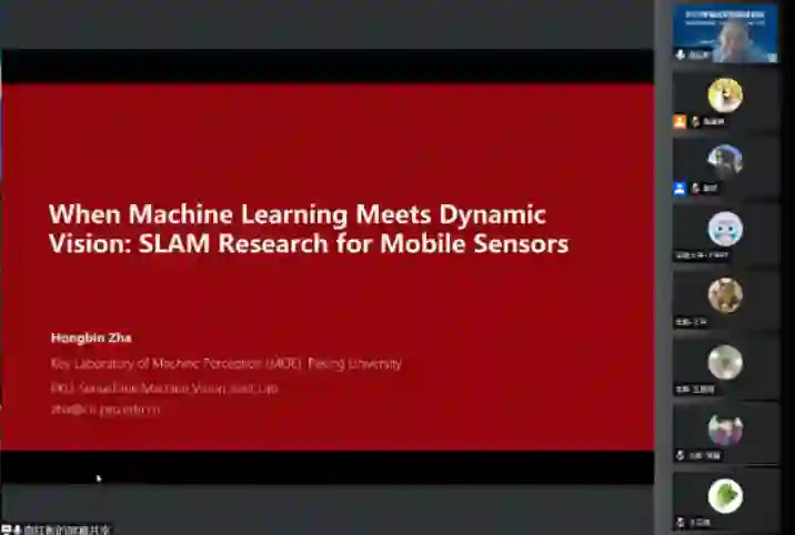 查教授的报告题目为《动态视觉中的机器学习:移动传感器中的SLAM研究》。三维视觉的一个主要任务是利用传感器视点的变化与成像几何的约束来实现三维场景的几何与结构重建。因此,伴随传感器移动的动态视觉与3D视觉的关系愈加密切,SLAM(Simultaneous Localization and Mapping:即时定位与地图构建)技术再度成为3D视觉领域的研究热点。报告全面阐述了SLAM技术,总结了目前SLAM研究的现状,并提出了仍然存在的两大挑战,即缺乏系统性的定义,同时忽略了时间相关性。针对这些挑战,查教授提出了自监督的在线SLAM学习统一框架,分别从定义数据流的时间相关性、通过记忆模块改良预测器并改善系统功能、提高在线自适应能力和提升概率地图表示能力等四个方面对SLAM技术进行改善,从而提高动态视觉系统在真实复杂场景中的应用能力。