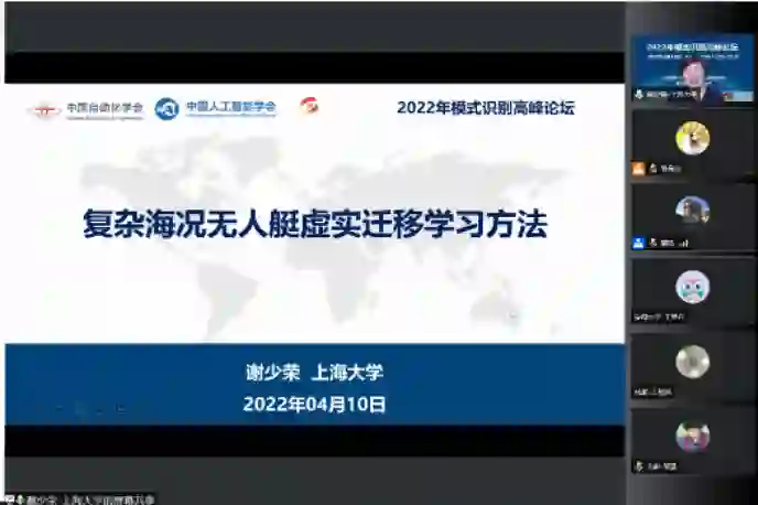 谢教授的报告题目是《复杂海况无人艇虚实迁移学习方法》,报告全面阐述了其研究背景及解决思路,并针对复杂海况无人艇虚实迁移学习存在的复杂任务自学习难、虚实感知数据差异大及任务多样性建模难等问题,提出了对应的解决方法及其所使用的关键技术。最后,谢少荣教授对该研究方向进行了总结与展望。
