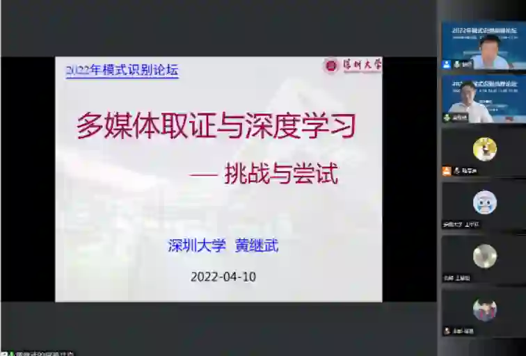 黄教授的报告题目是《多媒体取证与深度学习》,报告首先从多媒体取证的研究背景开始,详细地介绍多媒体取证所关心的问题。黄教授之后又从学术研究和应用需求的角度,探讨了深度学习应用到本领域存在的挑战。最后黄教授以伪造篡改图像定位方面的工作为例子,重点介绍了应对这些挑战上的工作。
