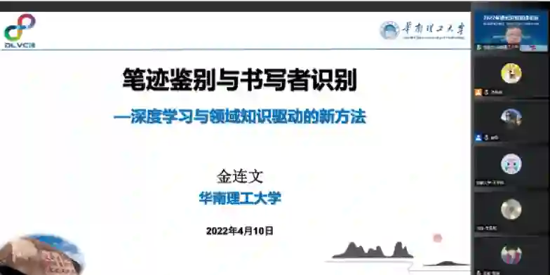 金教授的报告题目是《笔迹鉴别与书写者识别:基于深度学习和领域知识驱动的新方法》,报告围绕签名认证与笔迹识别问题,介绍基于深度学习与领域知识驱动的几个代表性新方法,包括结合对数高斯模型及深度排序学习的联机手写签名认证方法、传统特征提取与深度软动态时间规整融合的联机签名认证方法、基于手写文字轮廓路径积分特征的脱机手写笔迹识别技术等,并就未来技术发展趋势进行了探讨。