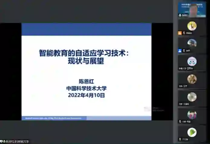 陈教授的报告题为《智能教育的自适应学习技术:现状与展望》。近年来,智能教育系统快速发展,越来越多的学习者参与开展在线自主的学习活动,同时也积累了大量的教育学习数据。如何利用这些数据,发展融入大数据与人工智能技术的智能教育,为学习者提供有效的智能服务是当前的重要任务。自适应学习,作为智能教育的关键应用,旨在通过大数据分析技术为每个学生提供个性化的学习活动,并能够调整学习内容、提升学习效率。本次报告围绕自适应学习技术和应用,重点针对教育资源的有效表示、学生的认知状态评估,和自适应学习策略等方面的现状进行介绍,分享了典型自适应智能教育系统的应用案例,并展望了未来可能的发展方向。