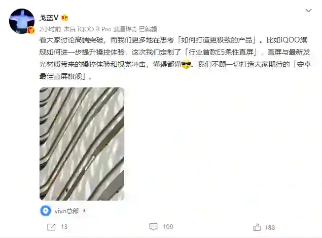 据@数码闲聊站 今日爆料,iQOO9 的定位区隔和上代一样,Pro 版本搭载了一块 6.78 英寸的曲面屏高刷屏幕,分辨率达到了 2K 级别,标准版则是 6.78 英寸的 FHD + 屏幕 2D 屏幕,两款屏幕都采用了三星钻石排列 E5 发光材料。另外该机的发布时间定在 1 月份,这距离上代机型 iQOO8 的发布时间仅隔了 5 个月而已。另外,iQOO 产品经理 @戈蓝 V 今日预热新旗舰,他表示该机将定制“行业首款 E5 柔性直屏”,直屏与最新发光材质带来操控体验和视觉冲击,号称将打造“安卓最佳直屏旗舰”。