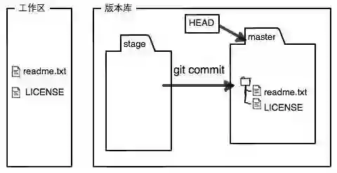 因为我们创建Git版本库时,Git自动为我们创建了唯一一个master分支, 所以默认git commit就是往master分支上提交更改。
