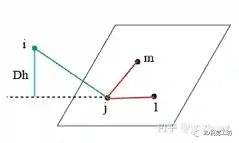 按照上述所讲内容,结合代码(x0,y0,z0)代表上图中i点坐标,(x1,y1,z1)和 (x2,y2,z2)分别代表 j 和 l 点坐标。