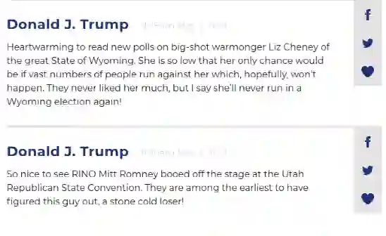用户还被允许把川普的博文分享到Facebook和Twitter上。