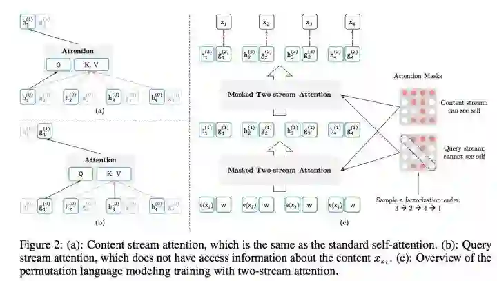具体实现的时候,XLNet是用“双流自注意力模型”实现的,细节可以参考论文,但是基本思想就如上所述,双流自注意力机制只是实现这个思想的具体方式,理论上,你可以想出其它具体实现方式来实现这个基本思想,也能达成让Ti看到下文单词的目标。