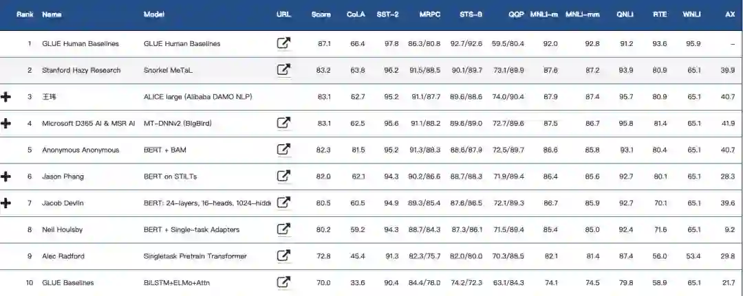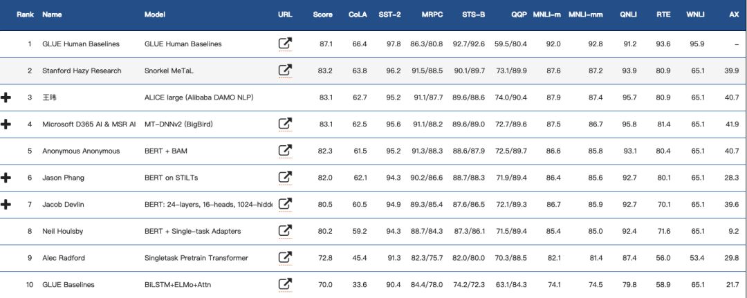 GLUE排行榜前10