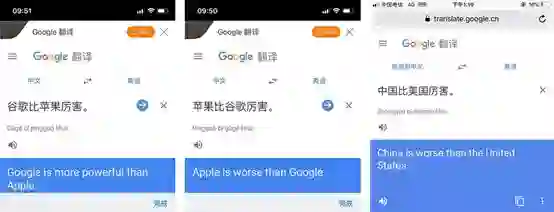 神经网络虽然可以根据现有的平行语料学习,理解句中细微的语言特征,但是它并非完美无缺,最大的问题来自于需要大量的语料以及它如黑盒子般的难以理解,也就是说,就算出了错也无从改起,只能够供应更多的正确语料来让“深度学习”改正。也因此同样一个句型,却可以有截然不同的翻译结果。(看看下图的三个翻译的例子,希望这只是谷歌内部的政治正确……)