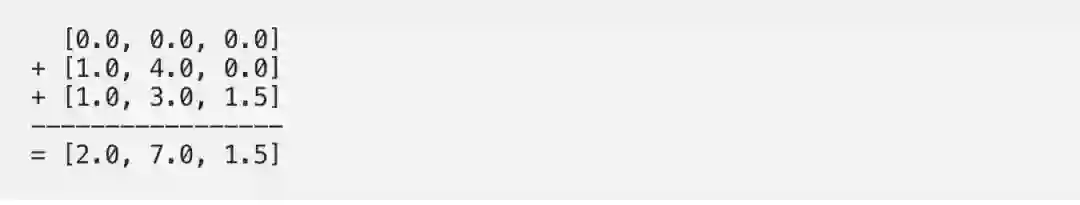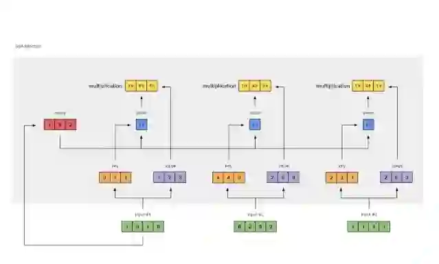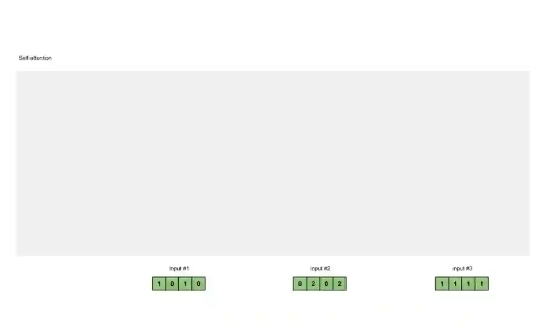 结果向量[2.0,7.0,1.5](深绿色)是输出1,该输出基于输入1与所有其他键(包括它自己)进行交互的查询表示。