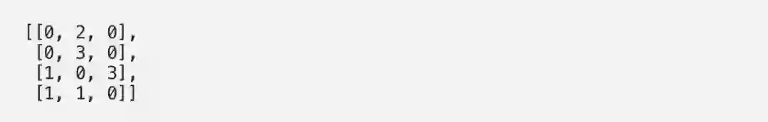 import torchx = [[1, 0, 1, 0], # Input 1[0, 2, 0, 2], # Input 2[1, 1, 1, 1] # Input 3]x = torch.tensor(x, dtype=torch.float32)