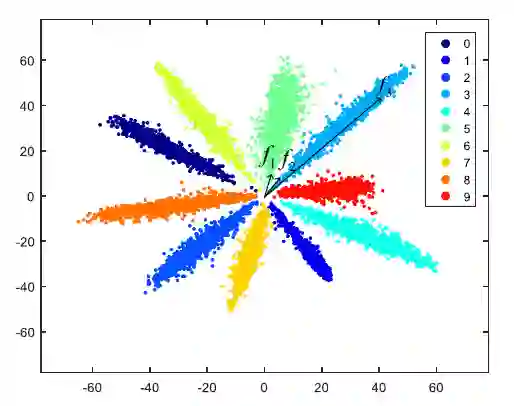 同时也说明了,使用欧氏距离作为 feature 和 feature 之间的度量是不稳定的,因为它依赖于 feature 的 norm。而如果我们用角度作为 feature 和 feature 之间差异的度量,就可以不受 norm 不稳定的影响。因此,我们希望网络更多的从第 3 点“缩小 feature 和 weight vector 的夹角”这个方向去学习。