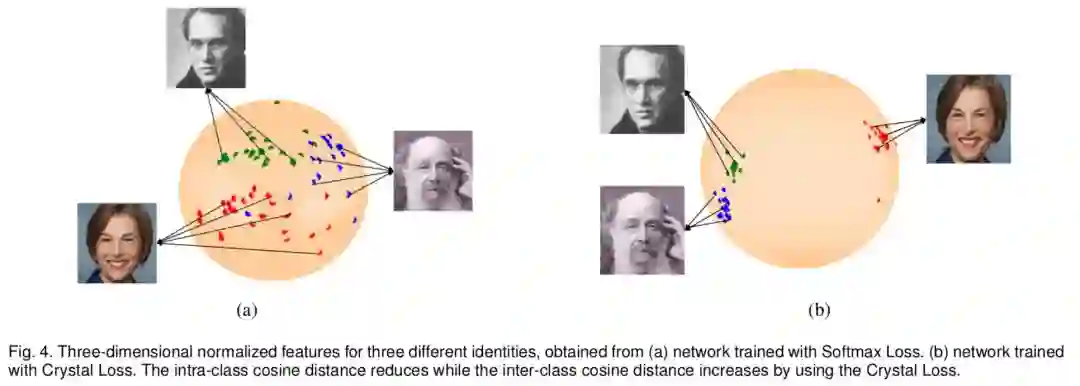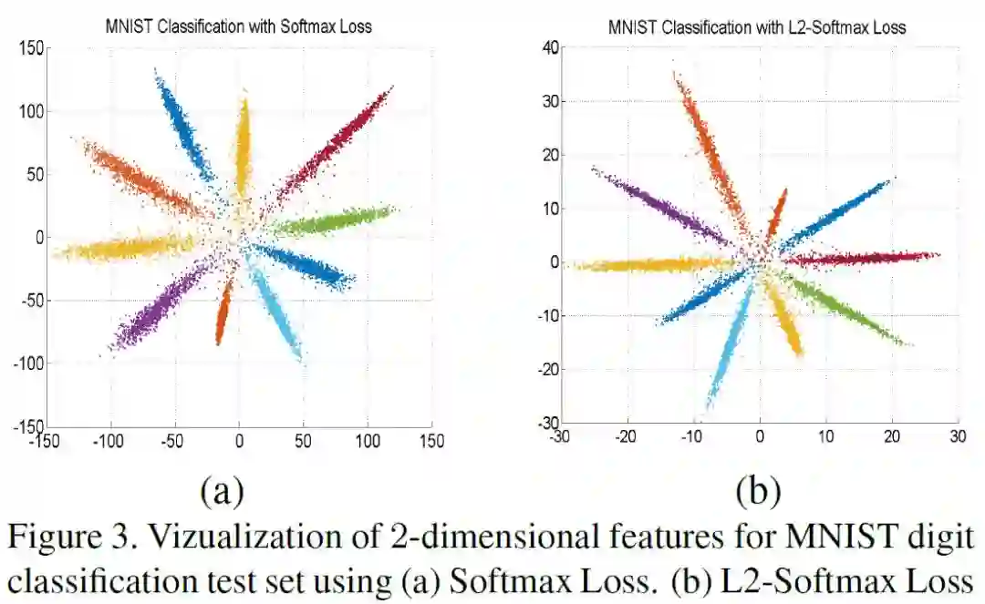 在 [CrystalLoss] 中,作者在 MNIST 上和一个简单的 3 个人的分类问题进行了可视化实验。在 MNIST 上,每个类变得更“窄”,在人脸实验上,每个类的 feature 变得更加集中。这些实验都证明了,使用 feature normalization 确实能让不同的类学出的 embedding,在角度方向上更具有可区分性。