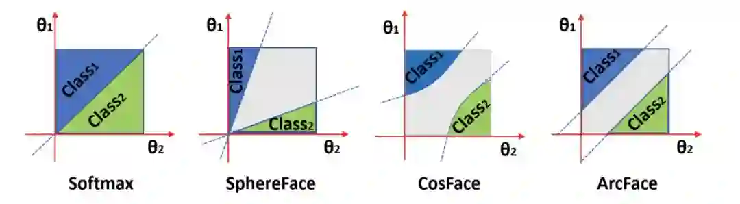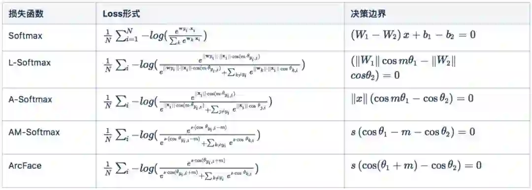 最后,我们总结一下加 margin 的几种 Softmax 的几种形式: