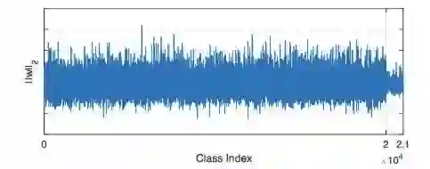 可以发现,上图最右侧,从 2 到 2.1 这个区间,也就是最后的 1k 个 id 的 weight 的 norm 明显小于前 20k 个。并且,最后 1k 个 id 在训练集上的 recall 只有 30%。而在增加了作者提供的 weight normalization 方法后,最后 1k 个 id 的 weight norm 和前 20k 个 id 的 weight norm 之间的差距明显变小了。作者提到在训练集上的 recall 一下子提升到了 70%。