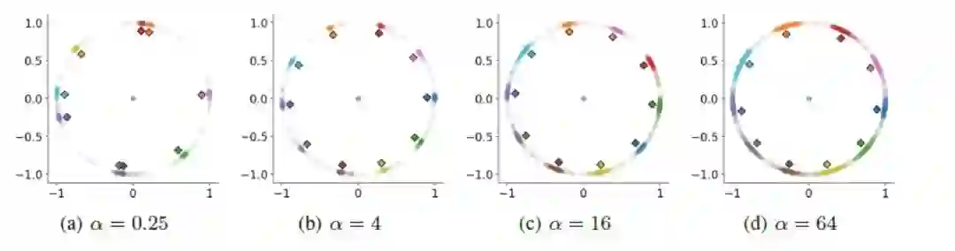 逐渐变小 α 的过程,也就是逐渐把分类面附近的样本往类中心挤压的过程。对应地,temperature 逐渐增大,也就是本文的“heated up”。