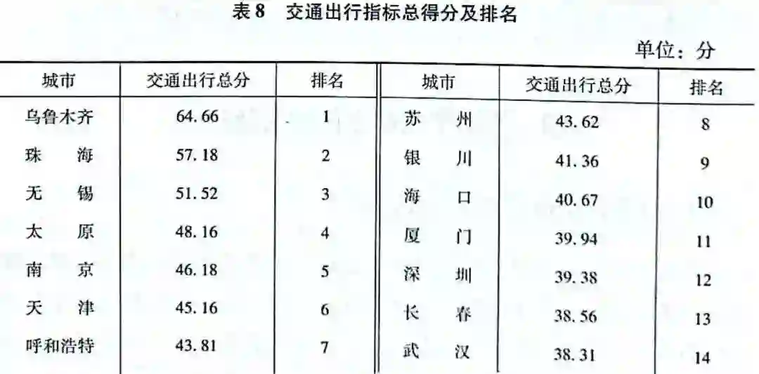 报告从人居环境、交通出行、社会公平与社会参与三个方面对主要城市进行了衡量。