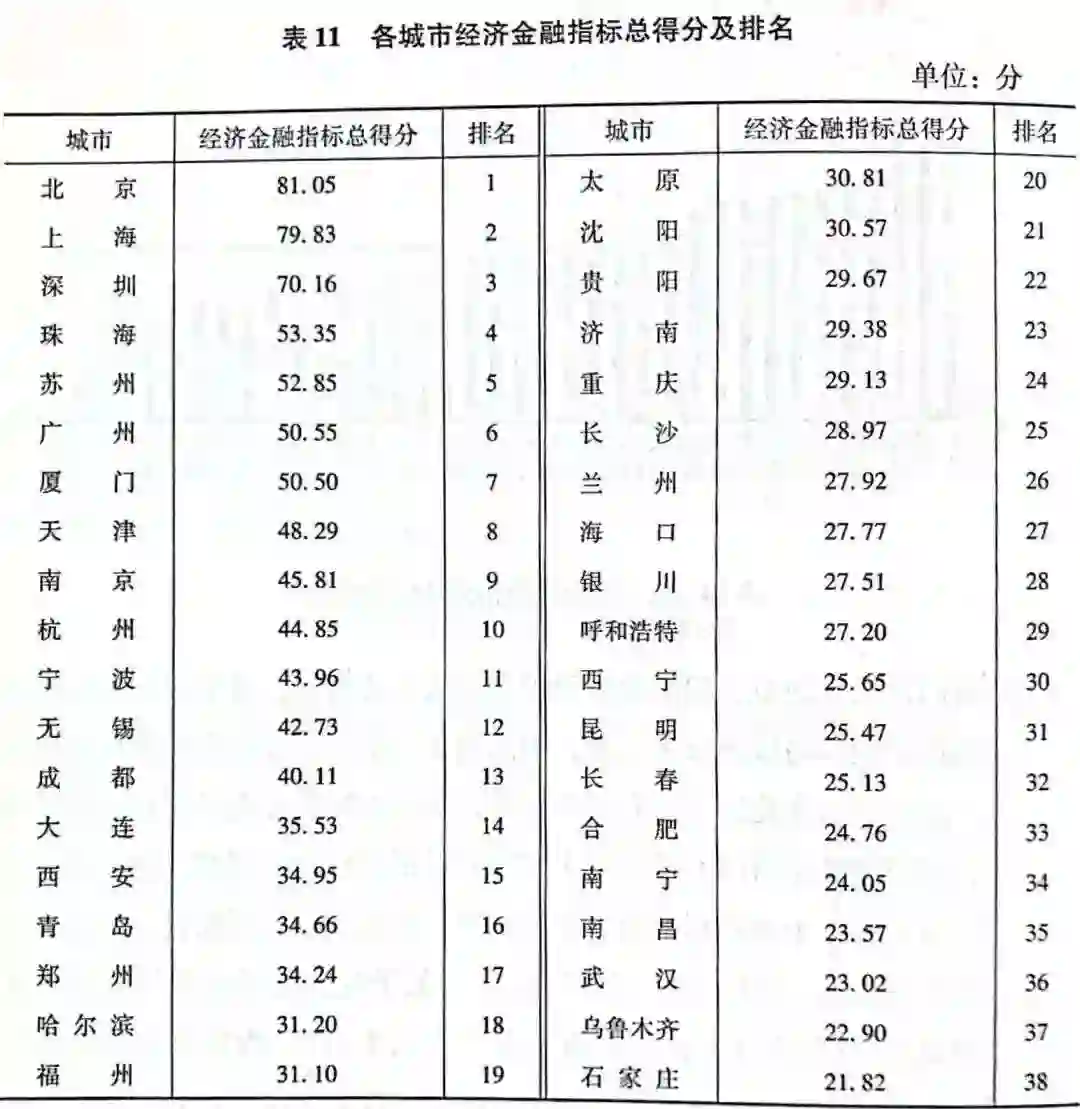 根据报告统计,经济金融水平排名靠前的城市基本上位于东部沿海地区,其中,北京、上海、广州、深圳四座一线城市均位于前十。