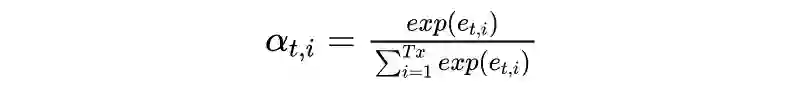 表示解码输出第 t 个词时 ,与第 i 个输入序列词之间的相关因子。