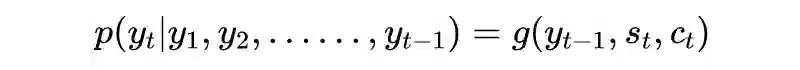 文献 [1] 提出将编码层所有隐层状态经过线性加权后,送入解码层,进行每一步的输出,如下图所示。这样能够保证在解码不同词时,每个词的编码贡献是不同的,也能反映出源语言与目标语言中哪些词是较为相关的。