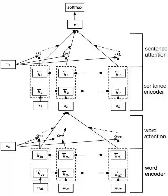 提出,由词级别、句子级别注意力机制组成,在文档级别的任务上,往往由多篇章、多句子、多词语组成,Hierarchical attention 能够更好捕获 global 和 local 的信息。