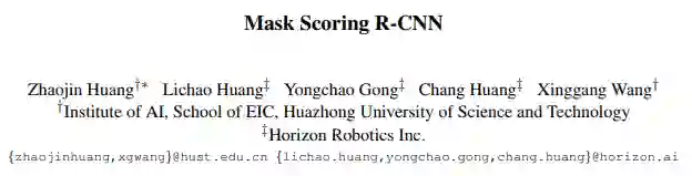 今天介绍一篇CVPR2019的论文,来自华科和地平线,这篇论文从实例分割中mask 的分割质量角度出发,提出过去的经典分割框架存在的一个缺陷:用Bbox bounding box的classification confidence作为mask score,导致mask score和mask quality不配准。因此文章基于Mask R-CNN提出一个新的框架Mask Scoring R-CNN,能自动学习出mask quality,试图解决不配准的问题。