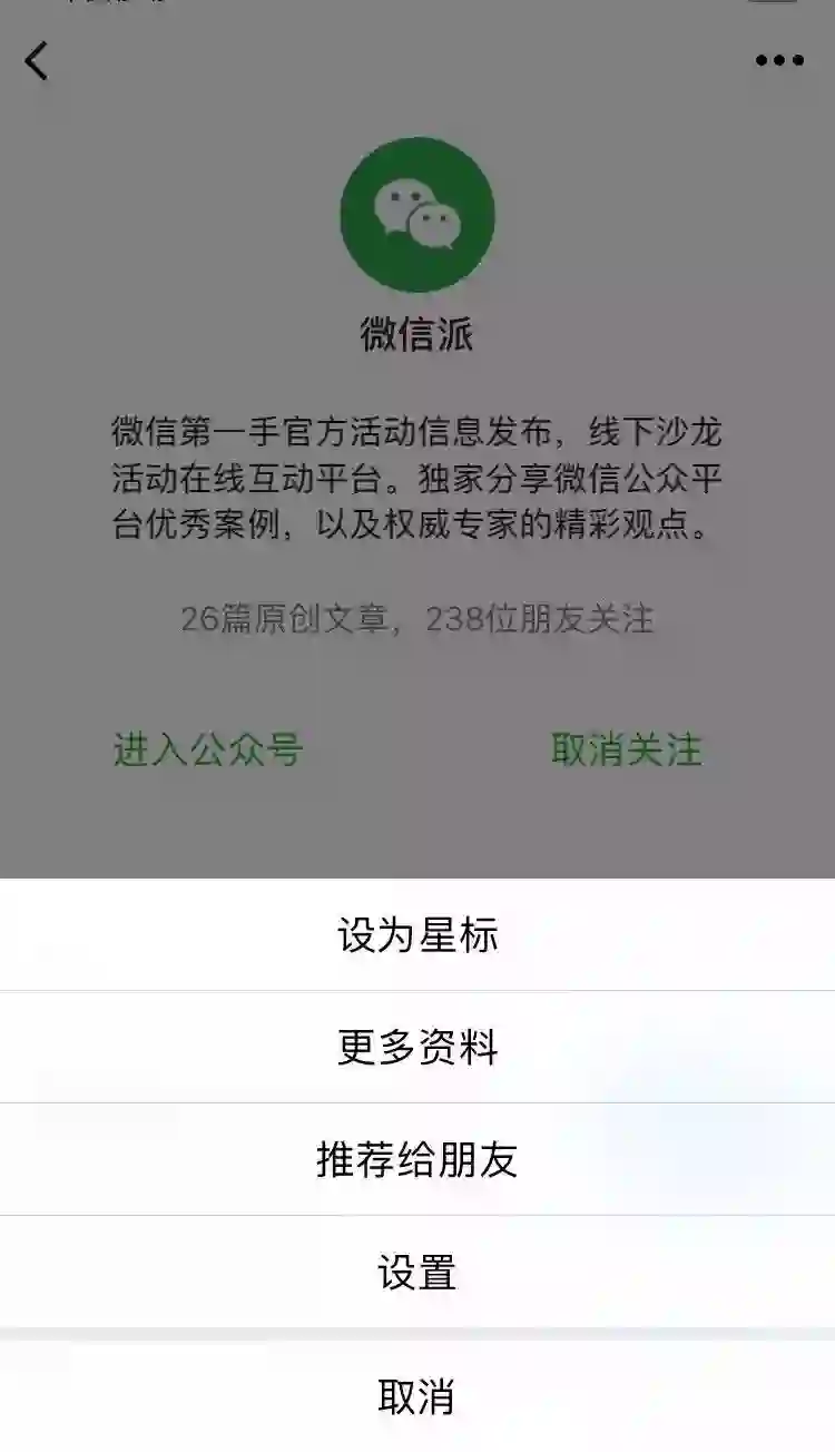 A:点击订阅号头像可进入订阅号小主页查看历史消息,以及进入会话模式。订阅号消息列表的右上角也可切换到订阅号会话模式,查看历史消息。