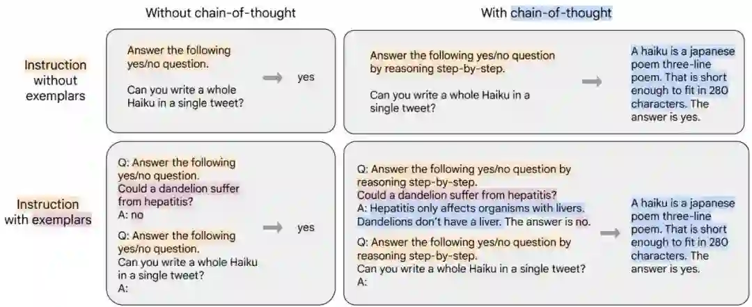 该研究发现对 CoT 数据进行指令微调的另外一个好处是可以实现零样本(zero-shot)推理,模型在没有针对 CoT 的少量样本的情况下就自行产生了推理能力,这可能需要大量工程调教才能正确实现。