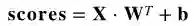 其中 X 是所有训练样本的维度矩阵,W 表示每个类别的权重矩阵维度,其形式为