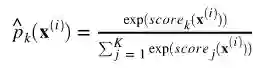 第 2 步:用 softmax 函数作为激活函数,将得分值转化为概率值形式。属于类别 k 的输入向量的概率值为:
