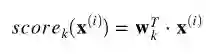 第 1 步:对于每个类别k,计算其输入的特征与权重值的线性组合,也就是说为每个类别的训练样本计算一个得分值。对于类别k,输入向量为,则得分值的计算如下: