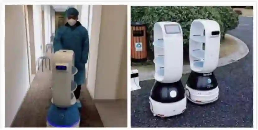 1月28日,擎朗智能在24小时内集结的首批16台送餐机器人在杭州市委党校疫情隔离区正式上岗,启用机器人代替人工提供全自主免接触三餐配送服务,不但避免人员交叉感染,还减轻工作人员的餐食配送的负担。