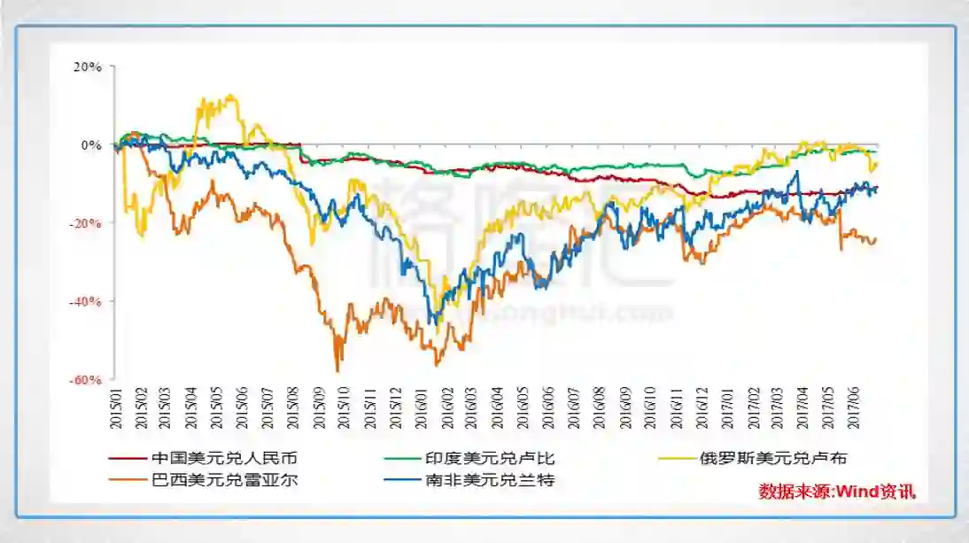 2.金砖五国中货币最为坚挺:2015年以来,金砖五国面对强势的美元政策,货币纷纷贬值。2015年至2017年6月29日,印度卢比相对美元仅贬值2%,是金砖国家中贬值幅度最小的一个,巴西雷亚尔对美元贬值24%,南非兰特贬值12%,人民币贬值11%,俄罗斯卢布贬值6%。货币坚挺背后意味着什么,相信不用解释了。