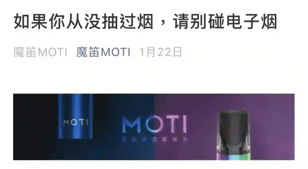 而MOTI魔笛,虽然在公众号中就电子烟相关知识进行了正向的科普——