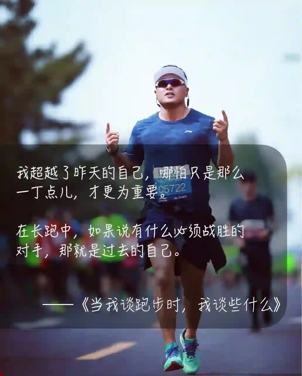最后我想分享一段村上春树的话作为结尾,我很喜欢他的《当我谈跑步时,我谈些什么》这本书,这里面有很多内容让跑者共鸣。尽管跑步是项孤独的运动,但是跑步者并不孤独。所以,我想用他的话作为这个系列课程每一讲的结尾,送给每一个喜欢跑步的人。